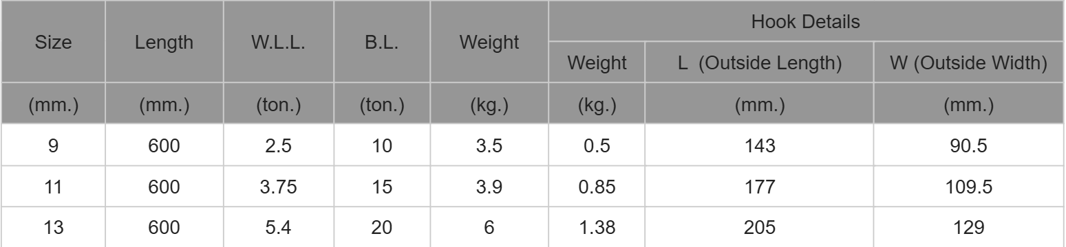 Working Load Limit: varies (from ~1 ton to 100+ tons depending on size and angle)