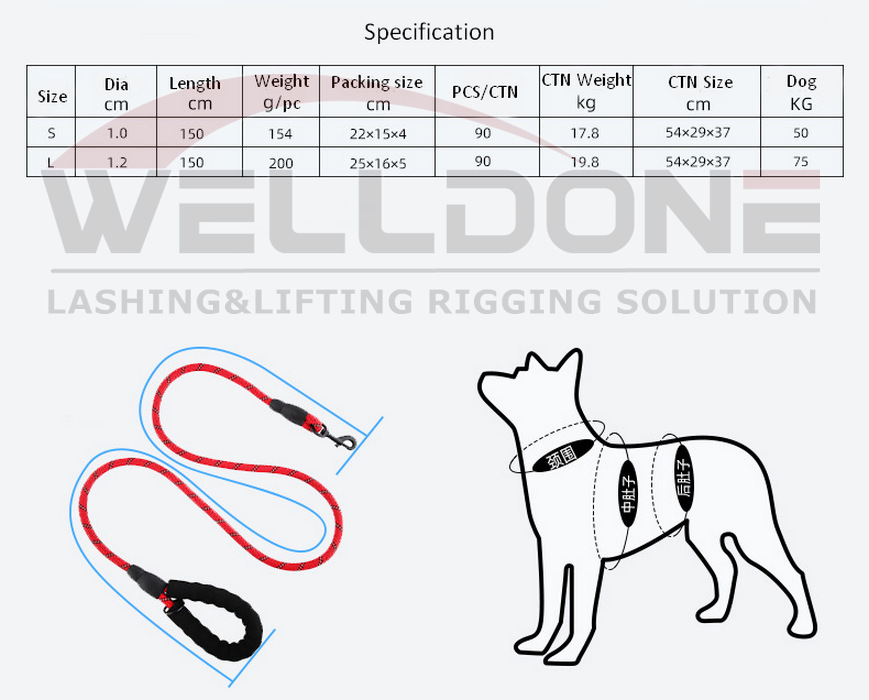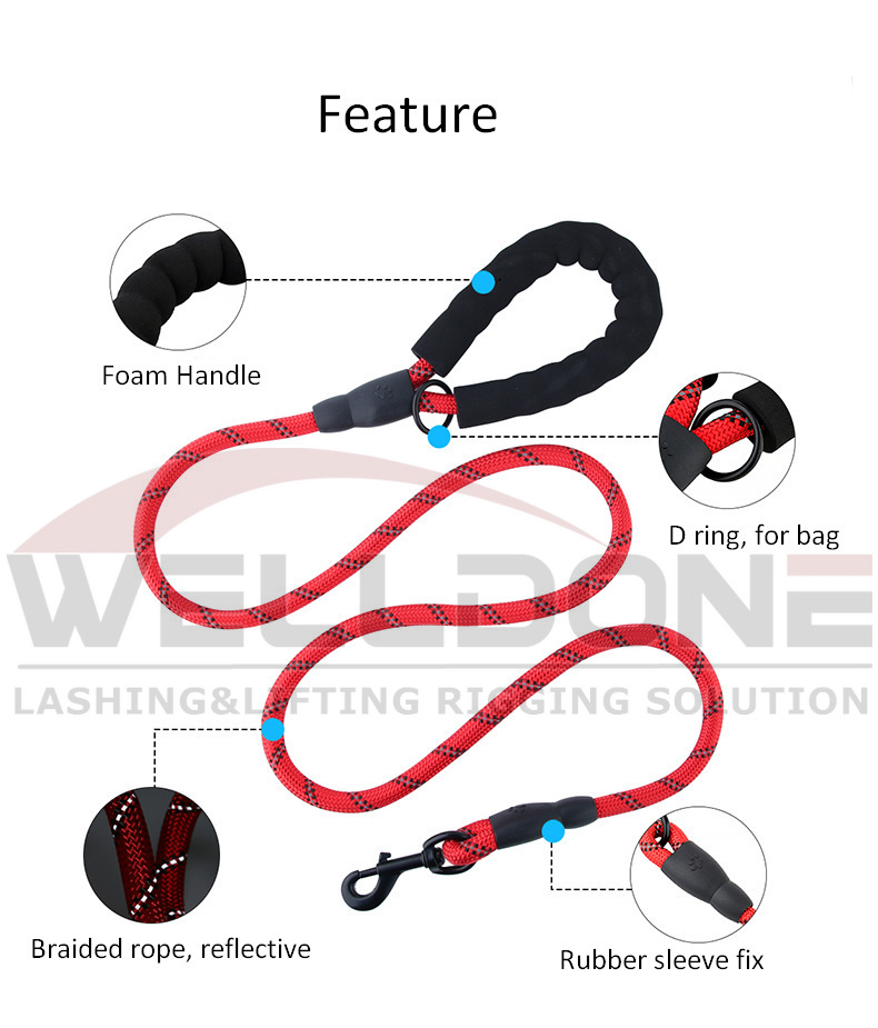 Reflective threads are woven directly into the braided rope, ensuring 360-degree visibility when illuminated by headlights, streetlights, or flashlights. Unlike surface coatings that can wear off, integrated reflective material remains effective over time. This added visibility helps drivers, cyclists, and other pedestrians spot you and your dog from a distance, significantly reducing the risk of accidents.